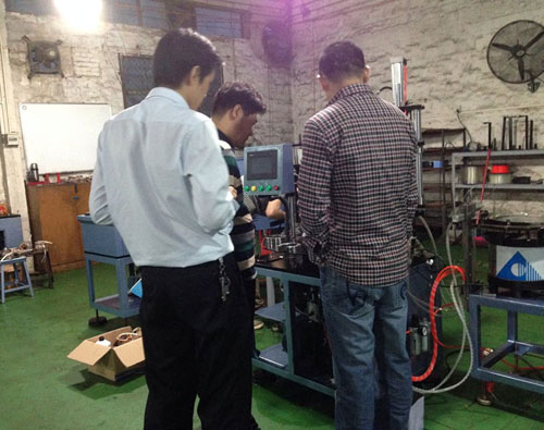 松普電器公司總經理鄭先生來到本公司,第一個要求去的地方并非辦公室或者休息間,而是本公司的設備測試車間。而本公司的測試車間主要負責設備出廠前的測試和新客戶定子的試驗,在里面有本公司完整的落線生產線。在現場我們的技術人員用專業的操作和本公司設備的優勢讓鄭先生感到本公司的實力和真誠的服務。另外鄭先生了解到本公司前身是生產電機,累積的十多年經驗且總經理的技術與專業,讓其堅定了購買設備的決心,為此在參觀后的下午鄭先生與本公司總經理簽訂合作關系,在本公司訂制槽絕緣紙插入機、槽片機、嵌線機、綁線機、初整形機和終整形機。