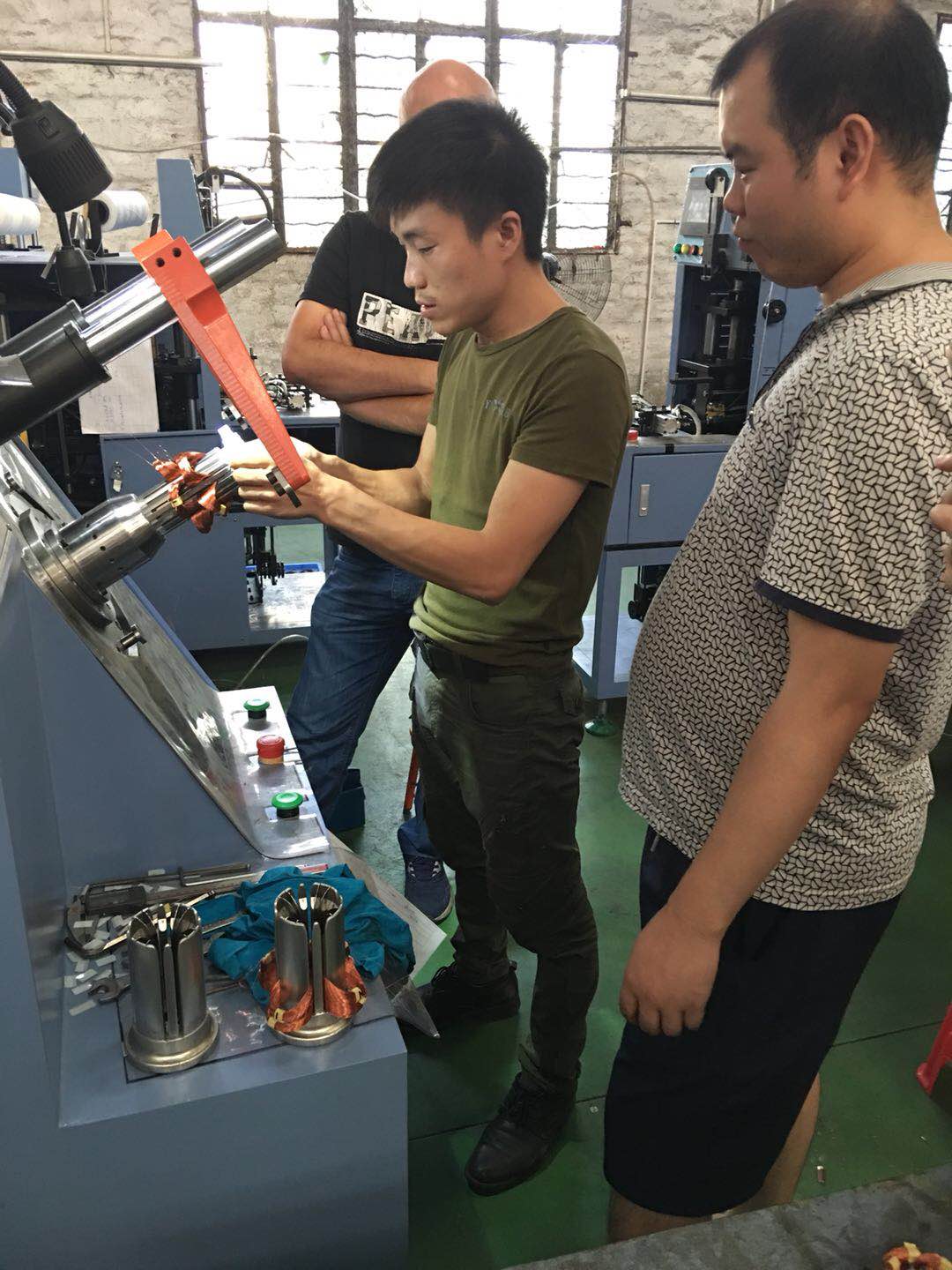 該客戶是通過我司老客戶介紹來到我們公司了解設備,通過我司設備生產出來的定子性價比較高而決定下單,設備于這個月中完成安裝調試,今天客戶派人員前來培訓,客戶學的很認真,操作簡單,很快就上手了。